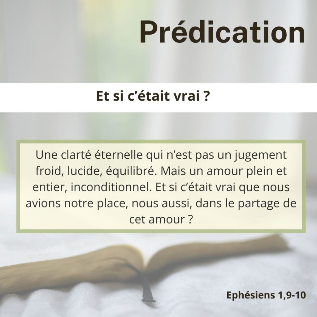 Vrai non pas juste maintenant, dans ce moment fugace où nous nous sommes rassemblés et où je vous parle. Vrai, non pas le temps que nous prêtons attention, à ces phrases, à cette idée, le temps que nous nous en rappelons – éventuellement. Oui, et si c’était vrai au-delà de nous. Au-delà de ce que nous pouvons ressentir, et expérimenter, de ce qu’on nous a raconté, de ce qu’on a entendu, au-delà de ce que nous sommes prêts ou non à croire, au-delà de notre capacité à accueillir et à intégrer, à oublier ou à ignorer.